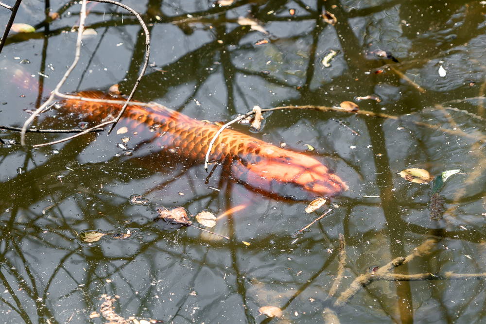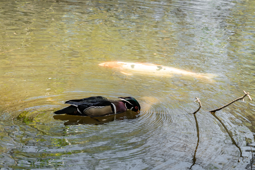 Egret fishes pond in Beverly Hills